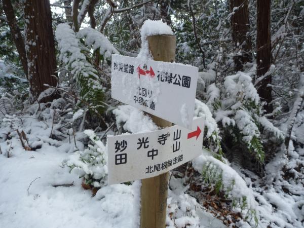 妙光寺山まで足を延ばす場合は、2山を結ぶ縦走路を通ります。途中、分岐がしばしば出てきますが、案内板もよく整備されているので問題ないと思います。