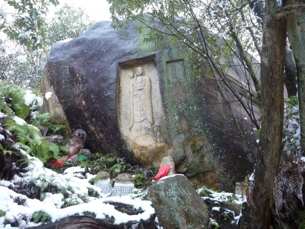 妙光寺山の北麓には、鎌倉時代に彫られたという石仏が残っていて(磨崖仏)、なかなか見応えがありました。