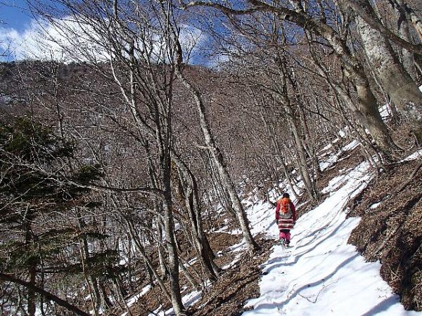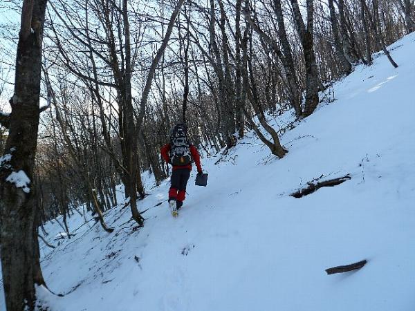 急斜面をトラバース気味に歩くところが多く、スノーシューには向かないコースかもしれません。和佐又山周辺はもちろんスノーシューに適したフィールドです!