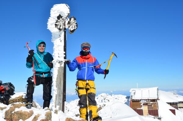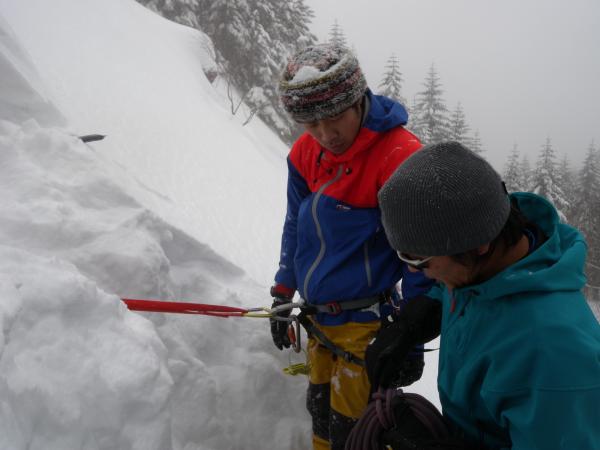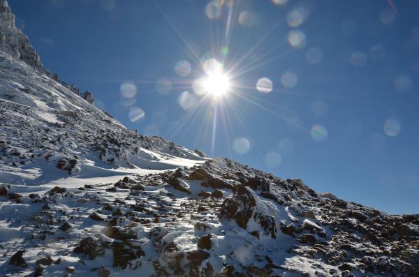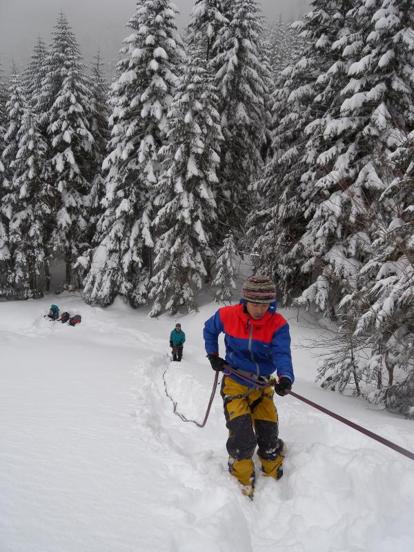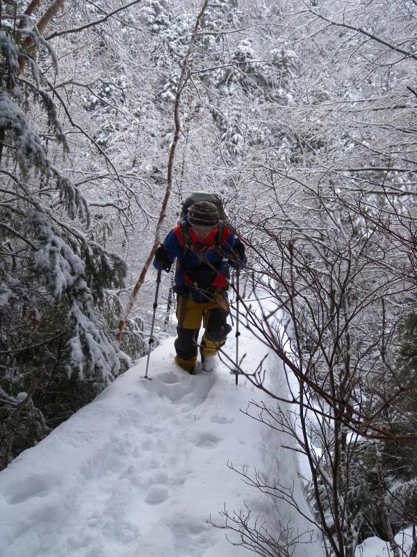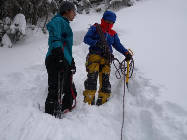 初の雪山登山、アイゼン歩きに悪戦苦闘。ズボンが穴だらけになりました。