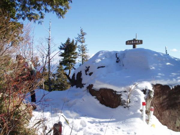 山頂の三角点は大岩の上に埋め込まれています(珍しい)