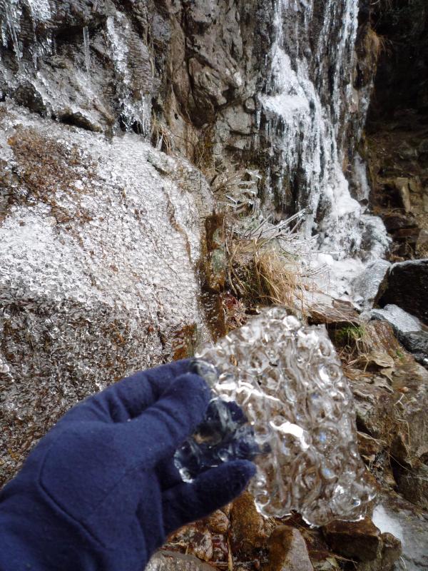 - 前日に暖かい雨が降った為か、難所ヶ滝までは雪がありませんでした。