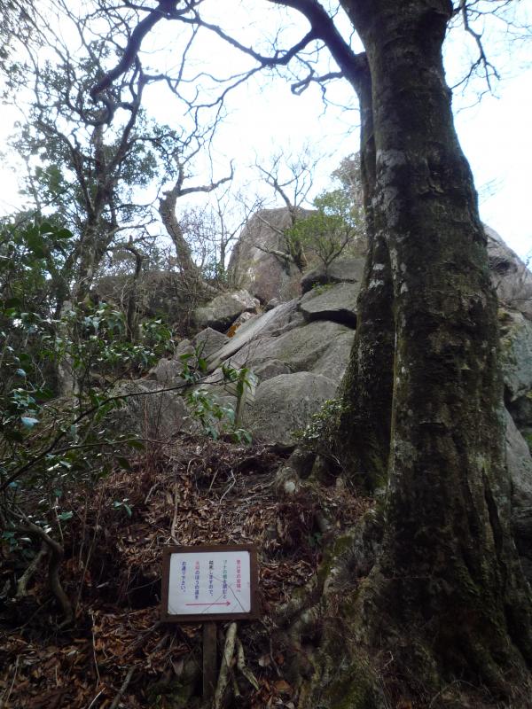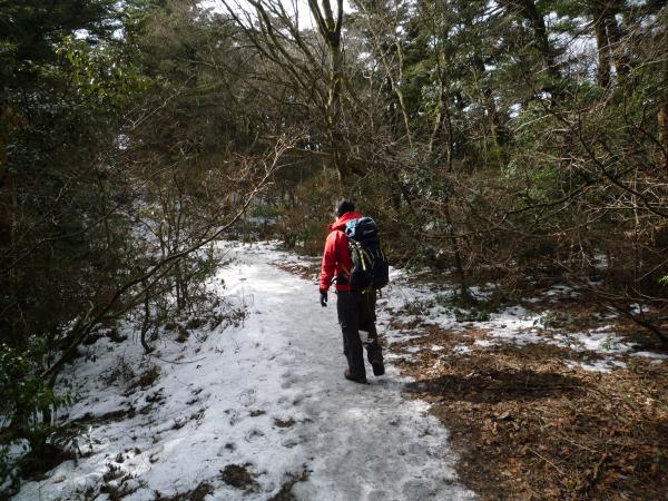 宝満山までの登りでは、地面が氷結しており滑りやすい。