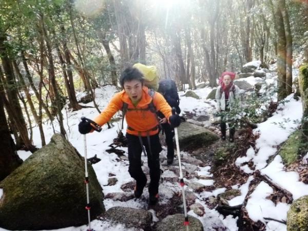 - この日は、積雪は少なめ。藤内壁出合いまでクランポンは必要ありませんでした。