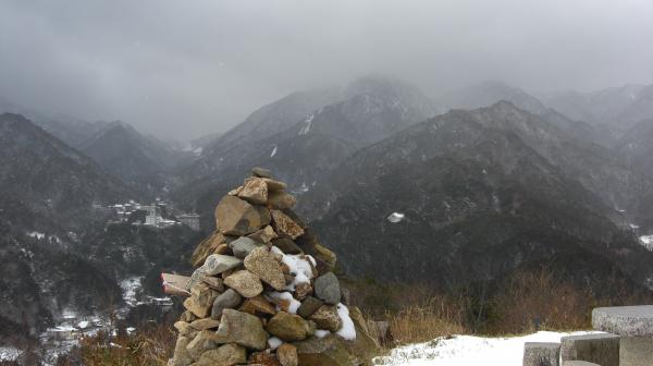 御在所岳の予定で計画していまた。 雪で道路渋滞に遭った上に見上げれば分厚いグレーの雲。 アイゼントレも兼ねての計画でしたが、予定を変更して、雪の里山ハイキングとなりました。 菰野富士山頂は、展望もよく広々とした所でした。 湯の山駅からもアプローチが可能で、雪があっても比較的気軽に歩ける山です。 帰りは日帰り温泉も楽しめます。