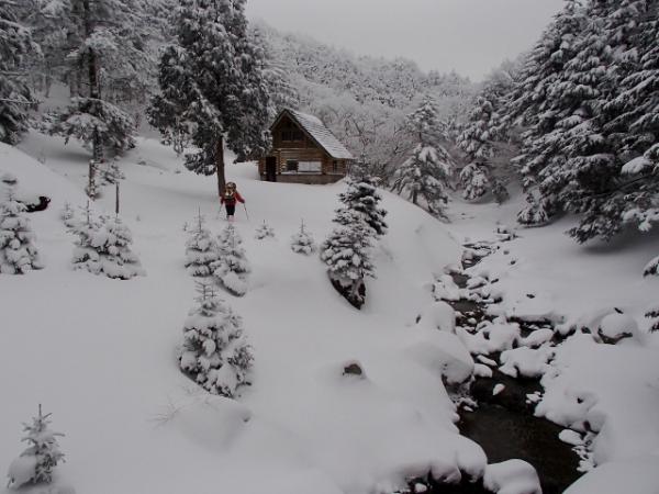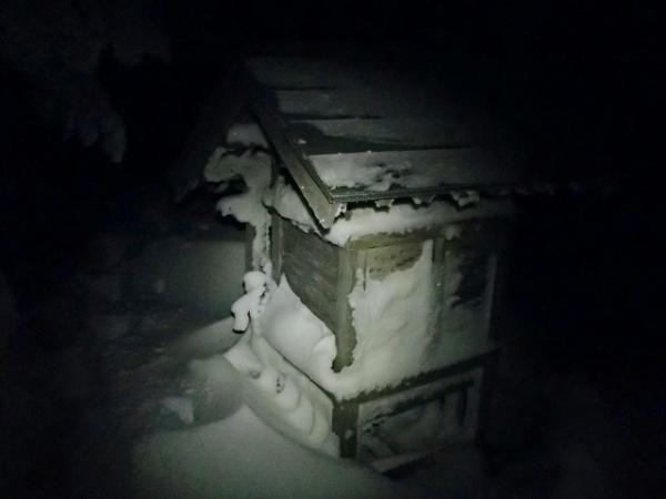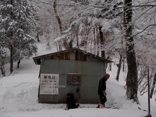 計画ではコンディションさえよければ釈迦ヶ岳往復が目標でしたが、数日前からの強い冬型の影響かフカフカの新雪がしっかり積もっておりトレースもほとんどありませんでした。ルートファインディングしながらのラッセルと、日頃の不摂生もたたり(笑)狼平避難小屋に着いた頃には16時を過ぎていました。1日目の目標は弥山小屋泊だったのですが、コースタイムの倍近く時間を費やしていたのでやむなくここに泊まることにしました。このペースでは釈迦ヶ岳往復は無理と判断し、予定を弥山~八経ヶ岳往復、弁天ノ森~行者還~大川口下山へと変更しました。幸い小屋はとてもきれいで快適に過せました。