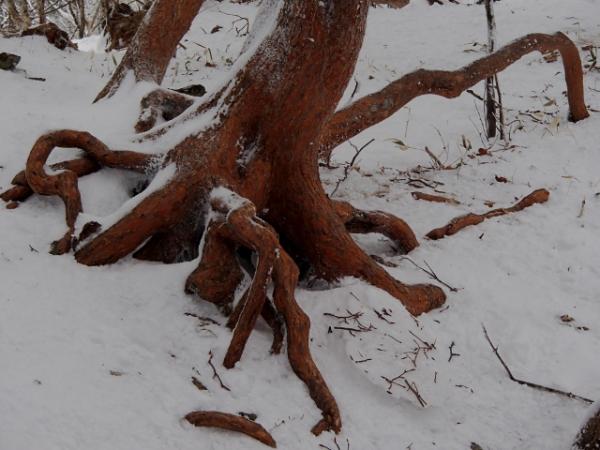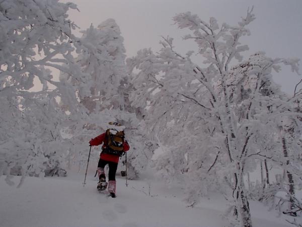 3日目のルートは足場が悪く登山道も不明瞭だったので、いざとなればロープを出す場面も想定しましたが、奇跡的に途中から微かなトレースが見つかり助かりました。一カ所だけ角度のある斜面のトラバースで数センチの雪の下が岩の箇所があり、緊張感とちょっとしたスリルを味わえました。