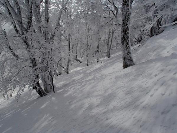 新雪のためトレースもほとんどなく、すぐに膝下位のラッセルになりました。