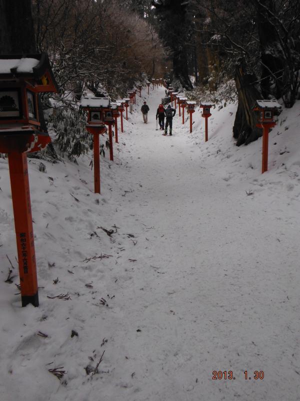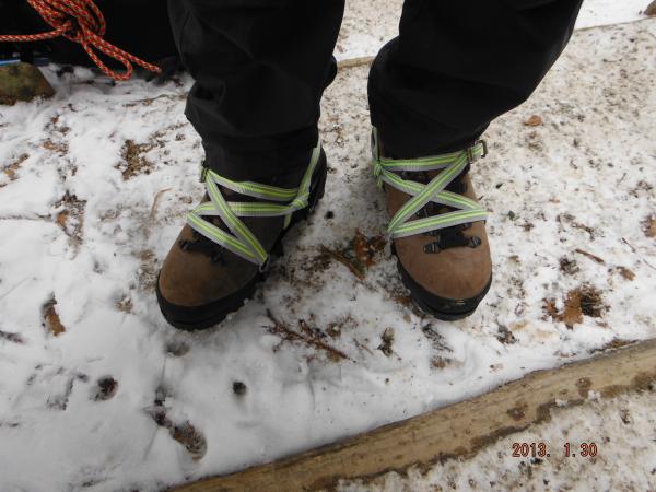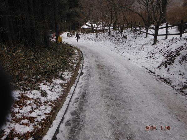 - 登山口の雪はまばらでしたが、5合目を過ぎたあたりから積雪が増え軽アイゼンを装着しました。気温が高くどんどん雪が解ける状況でしたが、2時以降は雪がかたくなり、下山道は滑りやすくなっていました。