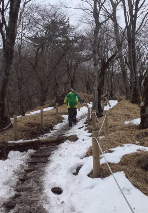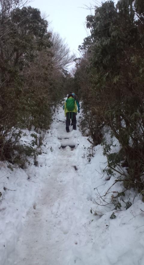 - 標高約700Mを過ぎると雪がしっかり付いています。軽アイゼン&ロングスパッツは必携です。