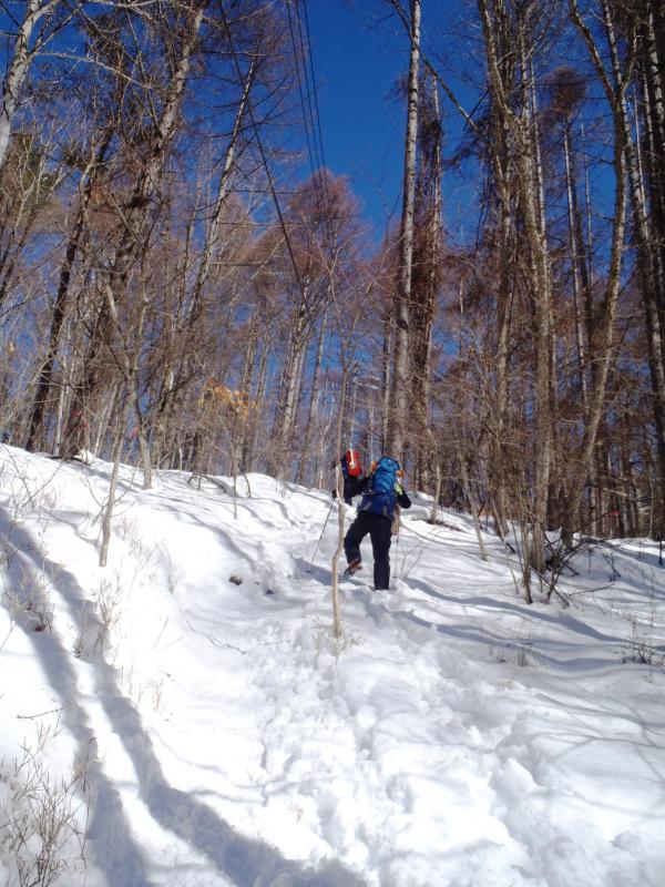 文三郎尾根の危ないクサリ場は大雪のせいで埋まっていたので、ひたすら急斜面を登る感じ。