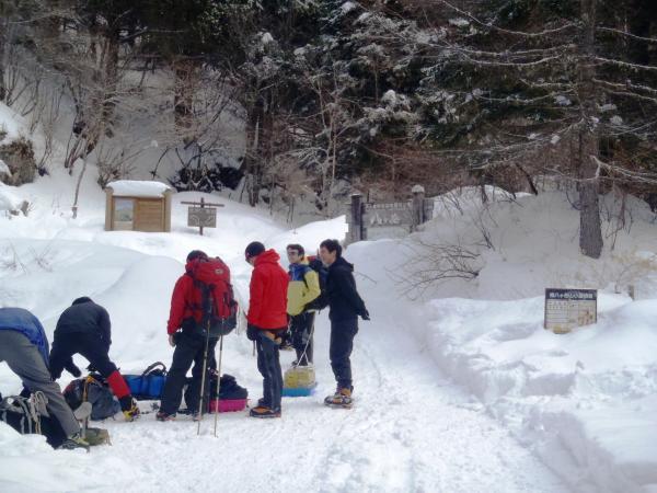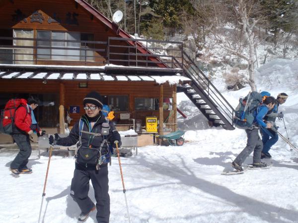 17時前に調布店&宇都宮店のメンバーが到着。なんと、美濃戸口に着く直前に道路が凍っていて