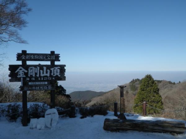 - ロープウェイ下バス停>32分>久留野峠>25分>千早園地>15分>湧出岳>15分>山頂>45分>金剛登山口バス停