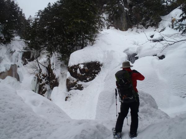 しかし、この日は雨・・・さらに気温も高く氷結は全くダメ・・さらに崩壊も進んでおり単なるスノーハイクに終わりました。