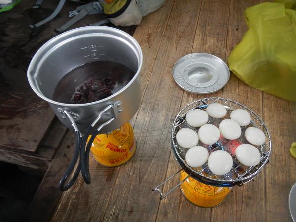 山頂直前で雨も風も強烈になりましたが、避難小屋の中は天国のよう♪