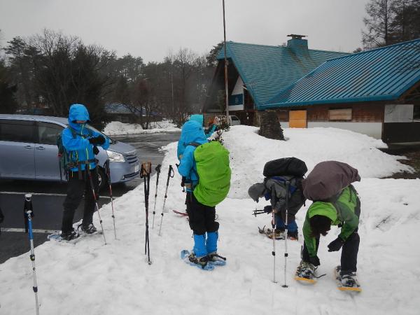 と危惧しましたが、少ないものの駐車場の目の前からスノーシューを履いてスタートすることが出来ました。