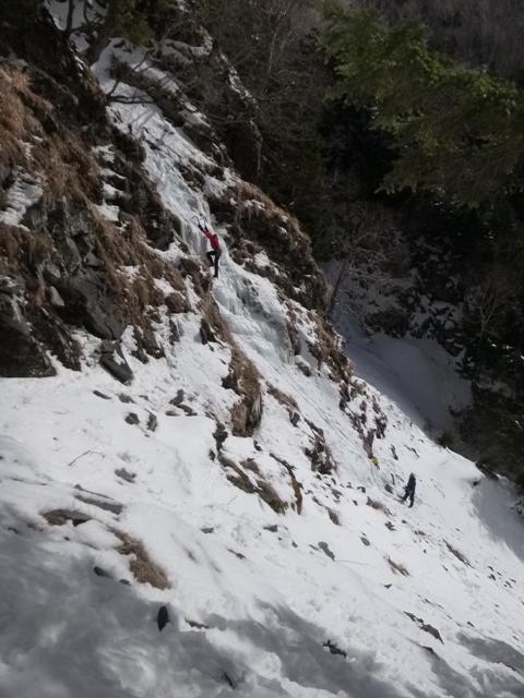 上の大滝のクライミング中はチリ雪崩に終始さらされ、DVDとかで見るクライマーの気持ちってこんな感じだったのかと少し分かりました。