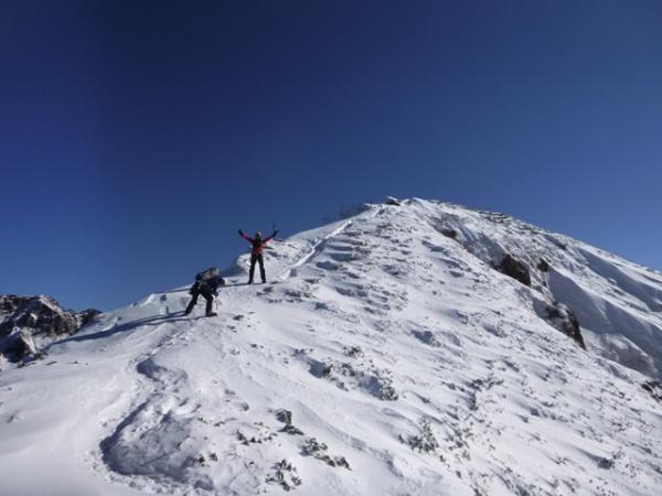 小さな滝や10メートルくらいの滝をいくつか登り阿弥陀岳に登頂しました。
