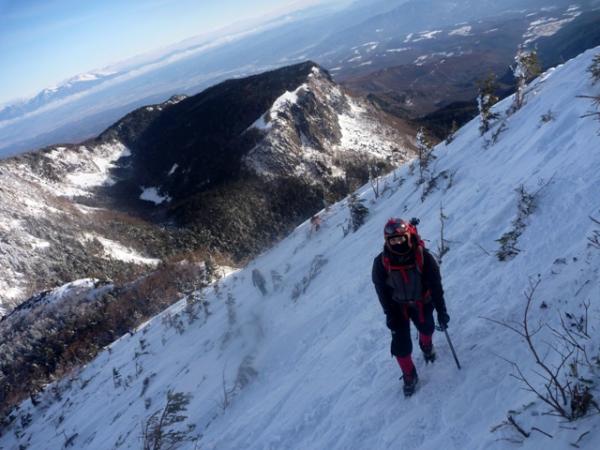 天狗岳へも急なところはありますが、危険箇所はありません。12本アイゼン、