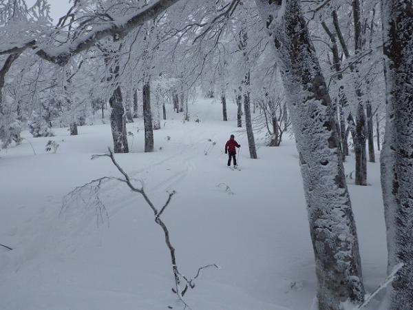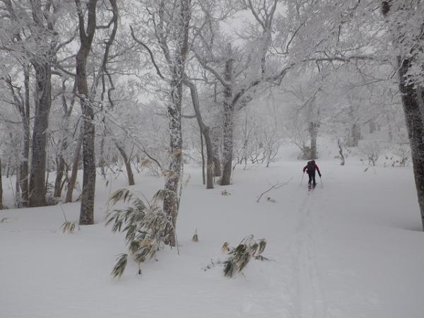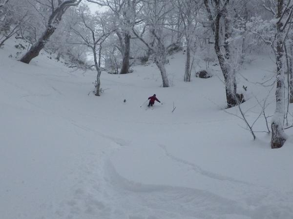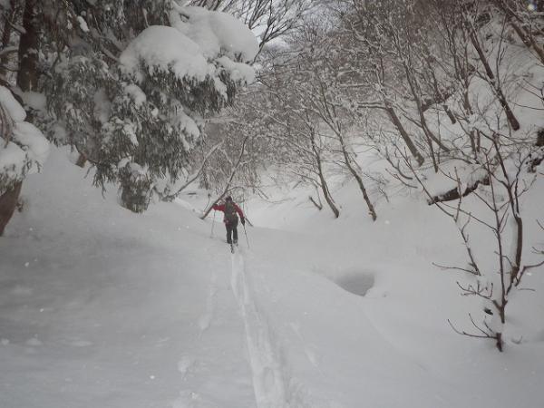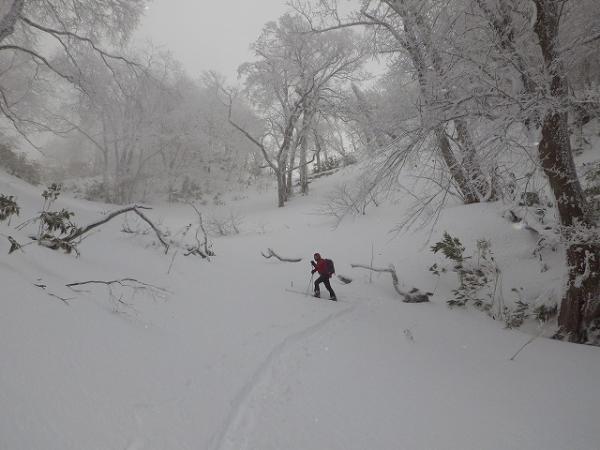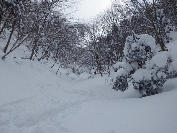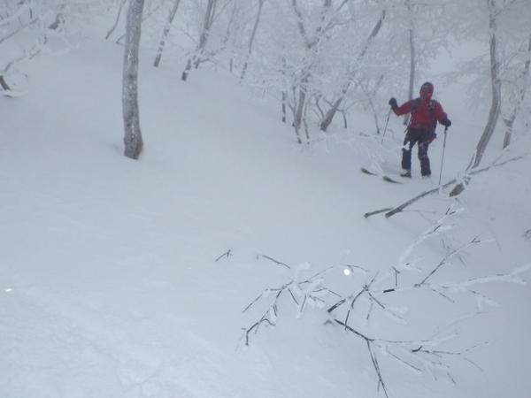 良い感じで滑りますが、ここも北斜面と同様、藪がうるさく緊張します。