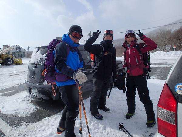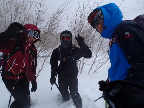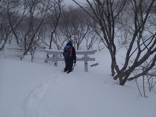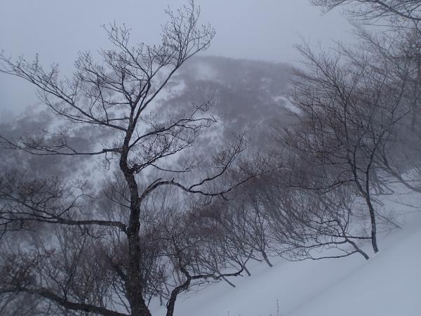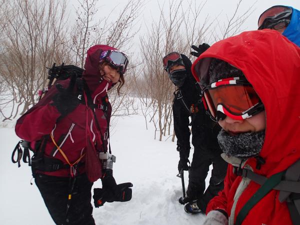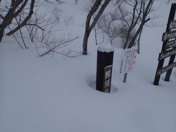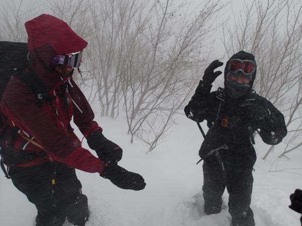 悪天候の予報だった為安達太良の予定を変更し那須岳へ。しかし、トレースもなく膝上のラッセルに苦しみ、さらに暴風雪が襲い掛かってきたためあえなく途中棄権。風が強いと噂の那須岳。噂通りの暴風に納得いたしました。