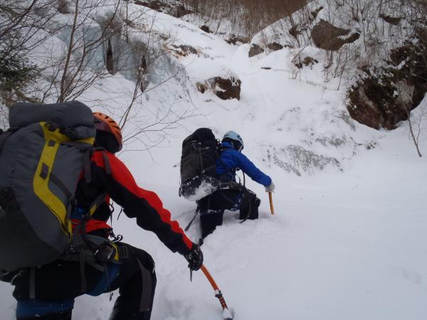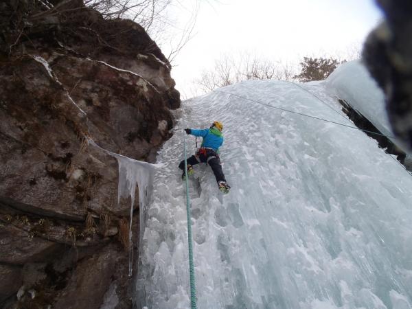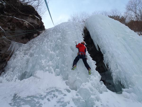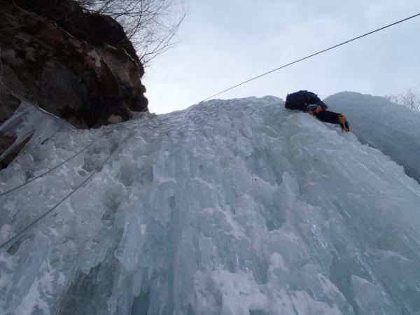 下りは懸垂を交えて対岸への登りがきつかったです。小春日和のような一日で氷は硬かったですが快適なアイスでした。