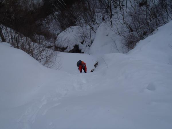- ガンマルンゼから先トレースがなく膝上ほどのラッセルだった。