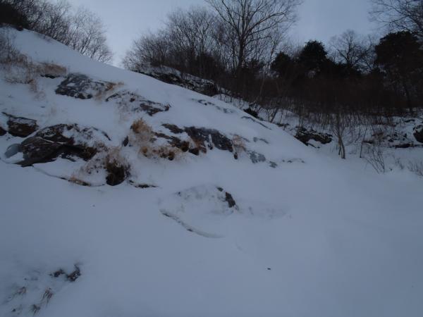 竹宇神社から歩いた為アプローチの林道歩きが長くなりさらに前日の雪でラッセルが多少ありました。