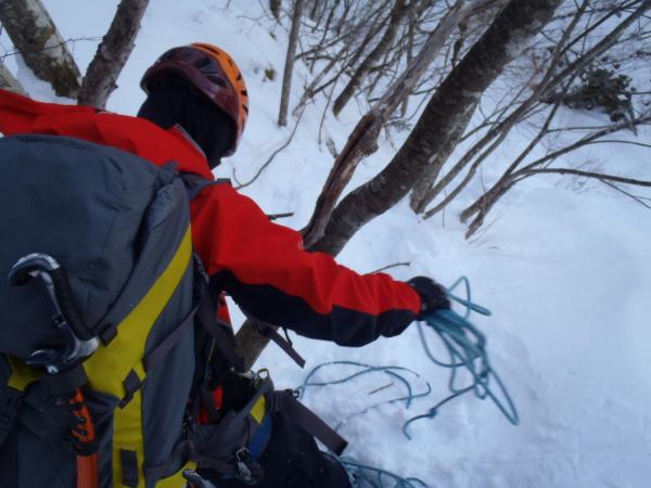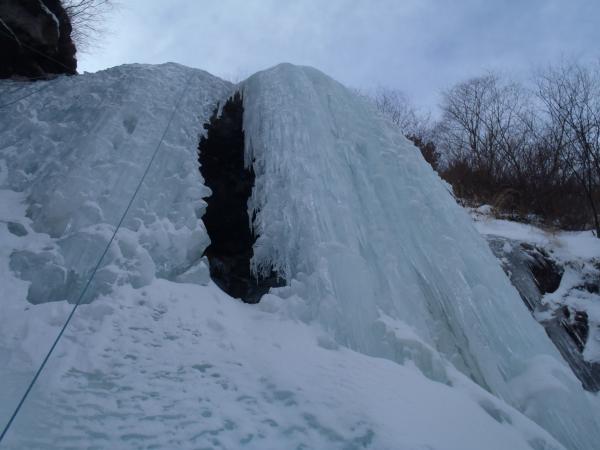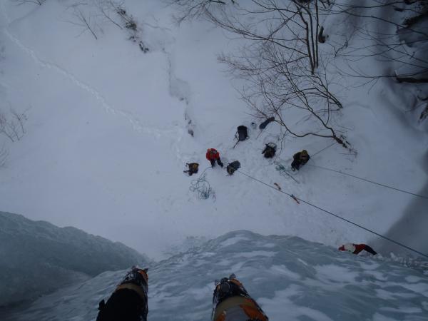 途中からも見えた双翼の滝約20mがとてもよく発達していたのでそこを1本登りトップロープを張り