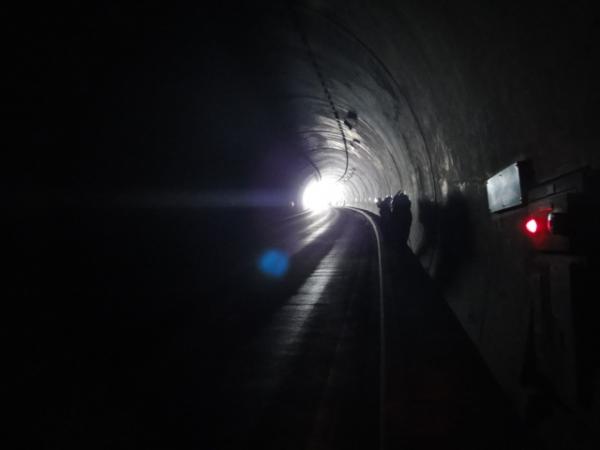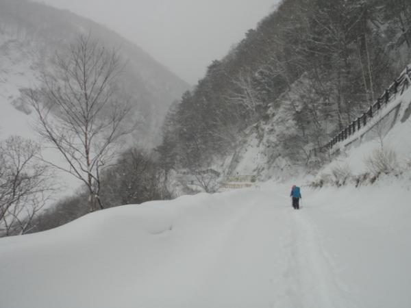 気温が5℃もあったので雪崩を心配して早足で。そして車が入ったのか、前日よりも明らかに歩き易くなっていたので、あっという間に釜トンネルへ。