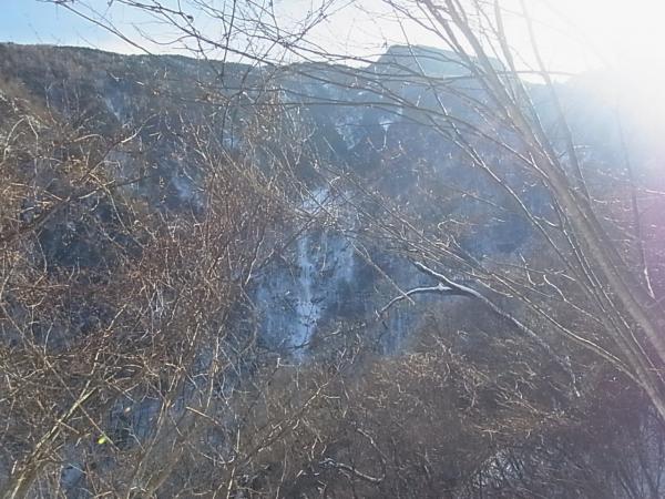 暖かい日が続いたせいか、ガンガノ沢の錦滝はスカスカ状態。