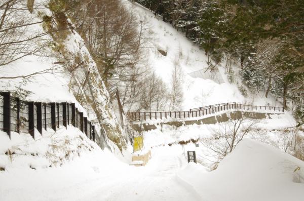 - 釜トンネルを出てから大正池まで、右側が急斜面になっていますので、雪崩に注意です。