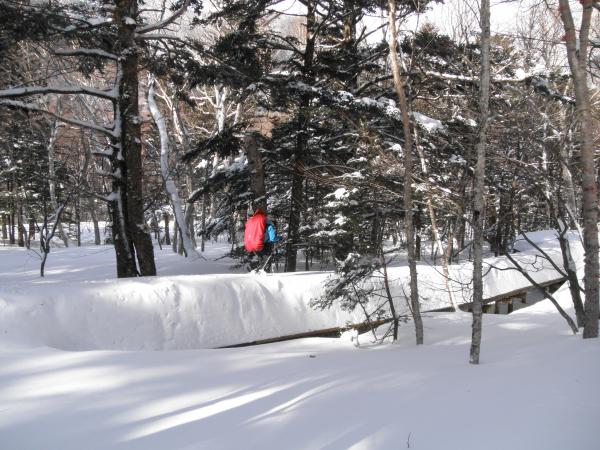 雪に埋もれた河原に出て写真を撮り、時間を見て、来た道を戻ります。