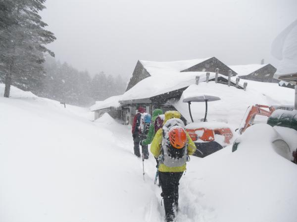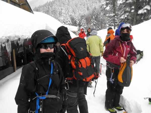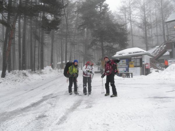初日、美濃戸口に着いた時には既に雪が降り、赤岳鉱泉まで雪の中の山行となりました。