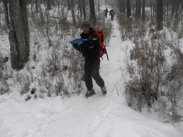 - 前日雪が降ったため、赤岳鉱泉から先にトレースがなく、なかなか進みませんでした。