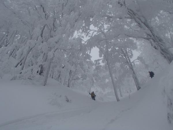 途中から、雪が重く深く、板がドンドン沈んでいきました。