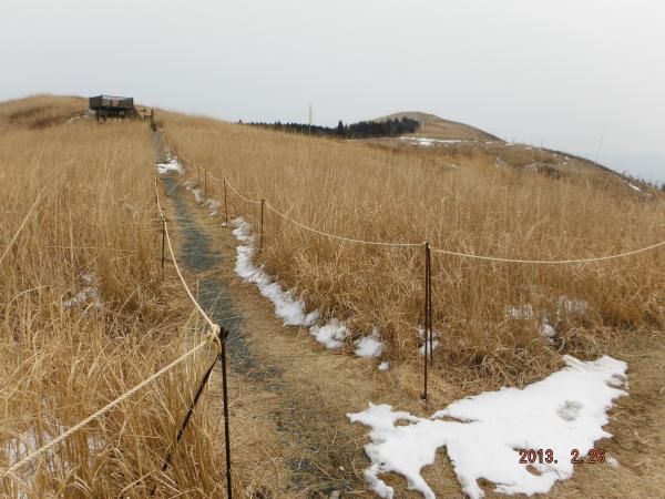 - 標高500m付近から雪がでてきて、山頂手前はばっちり雪がありました。生石高原は日当たりも良く雪はほとんどとけていましたが、下山道はまた雪がありました。