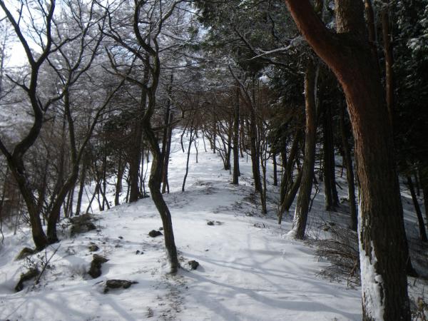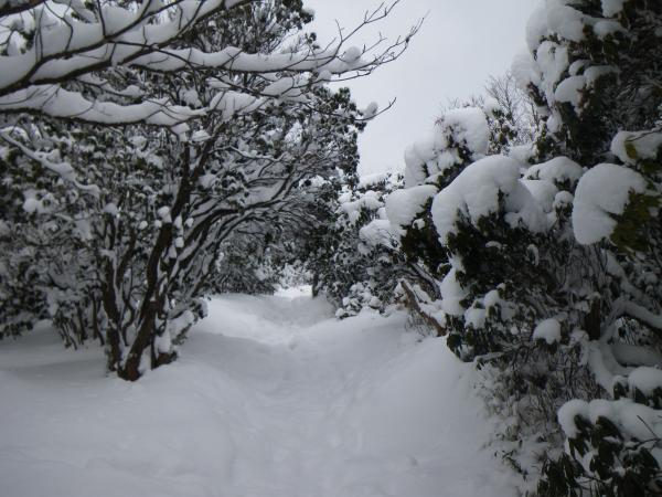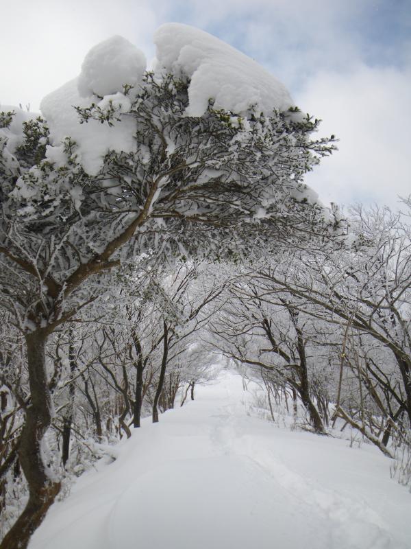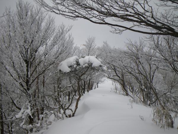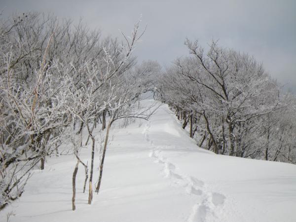 ⑤山頂手前200mあたりから雪が急に深くなり、ワカンが欲しい。