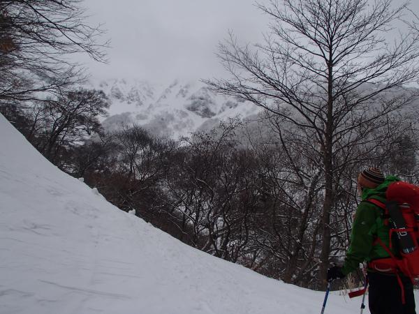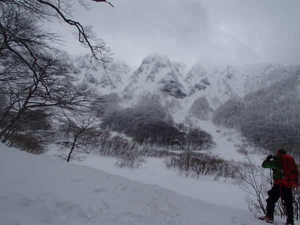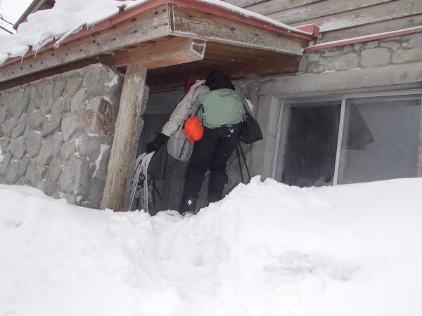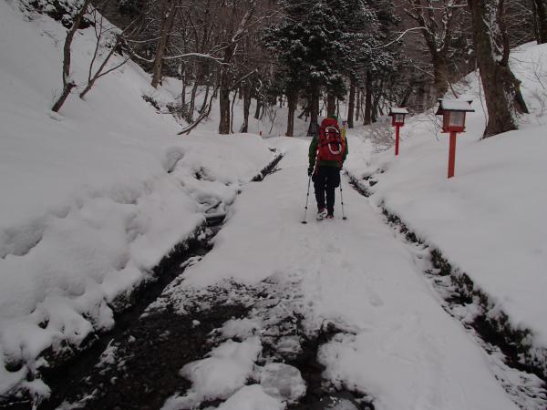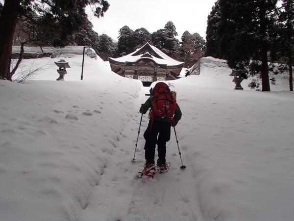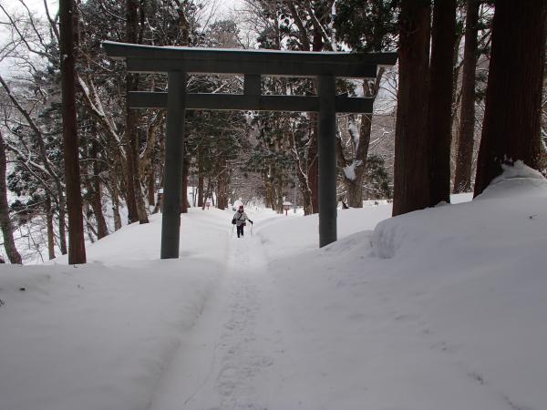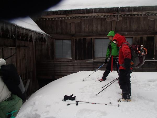 行きはスノーシュー。帰りはアイゼンに換えました。