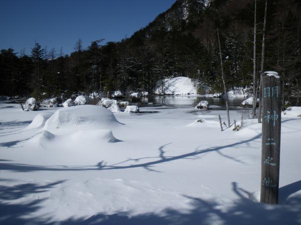 2日目:小梨平→(65分)【左岸経由】→明神館→(15分)→明神池→(15分)→明神館→(50分)【左岸経由】→小梨平→(5分)→河童橋→(60分)【車道経由】→大正池ホテル→(50分)→釜トンネル