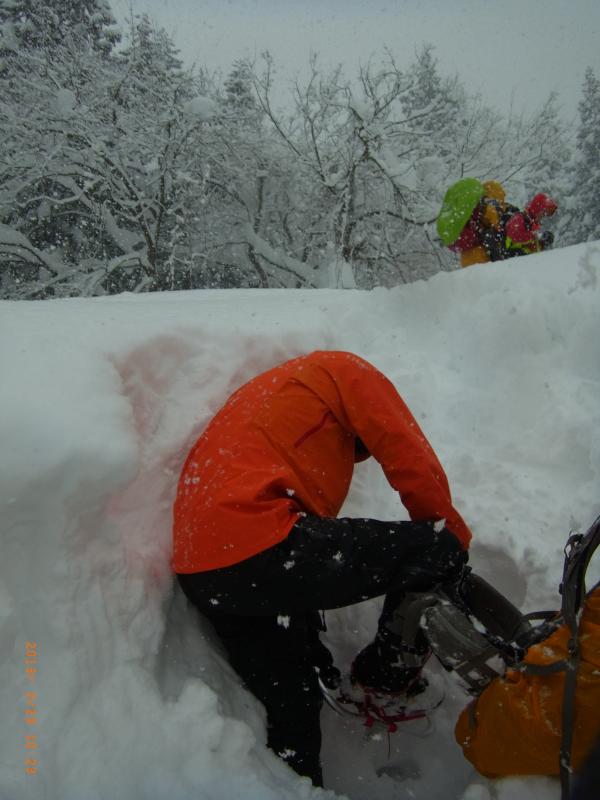 体重のあるメンバーは先行者の足跡に足をのせても崩れていたので、ゆっくりとした体重移動がポイントかと思われました。