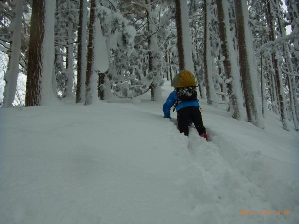 P900〜毛渡沢出合入山口:膝〜腰まで湿雪のラッセル