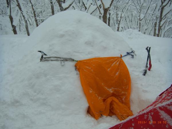テントをはり、スノーマウント(かまくら)を作り、立派なトイレを作り、