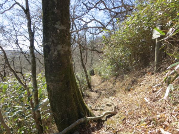 釈迦岳よりの下山は、峰越林道を使いましたが、八ツ滝上が崩落しており、車両通行止めでした。釈迦岳までは、矢部越の駐車場からも登れますが、3月6日現在、車での矢部村からのアクセスはできません。大分県側は大丈夫のようです。