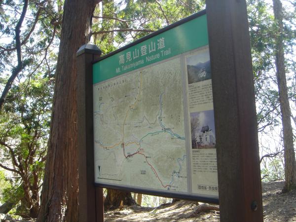 - たかすみ温泉(5分)平野登山口(45分)高見杉避難小屋(30分)小峠ルート分岐(40分)高見山山頂(90分)たかすみ温泉