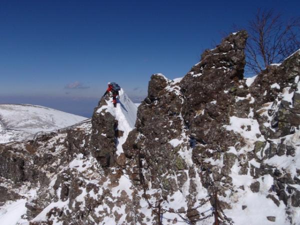 快晴で、3日間とも最高のコンディションでした。稜線に出ても風が思ったより吹いておらず歩きやすかったです。1日目の夜が雪がかなり降っていたので心配しましたが、朝から快晴となりました。夜は、テントの気温は-5度位でかなり冷えますので、しっかりとした防寒対策は必要です。とても気持ちのいい登山でした。