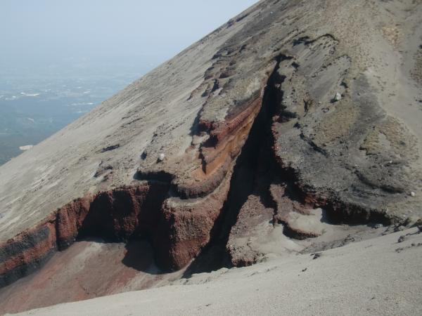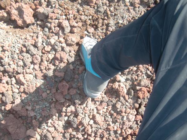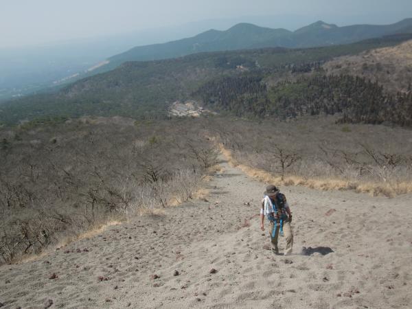 - 登山道の砂礫は滑りやすく、普通に登ろうとするとズルズル滑ります。一歩ずつしっかりと踏みしめて登るように心がけましょう。逆に下りでは、滑ってスピードが出がちになるので、転倒や他の登山者に注意が必要です。