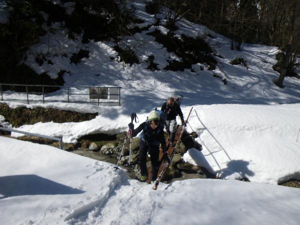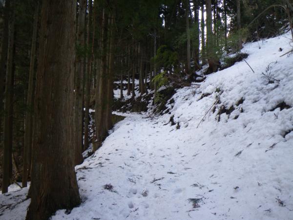 ②東俣谷沿いの関電作業道は凍結しており、スリップ注意。