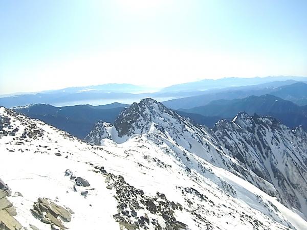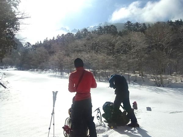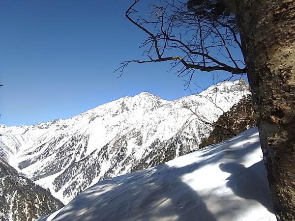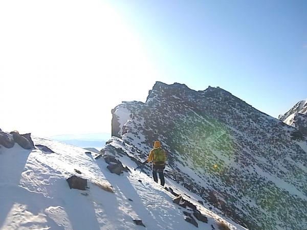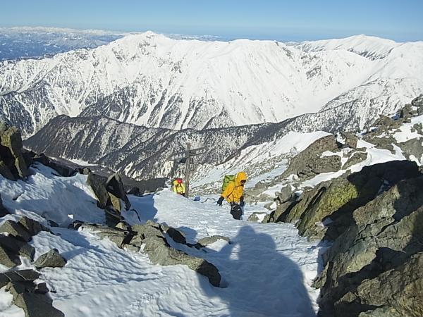 夏は多数の登山者が歩いていた穂高の稜線上は、冬は静けさに包まれていました。