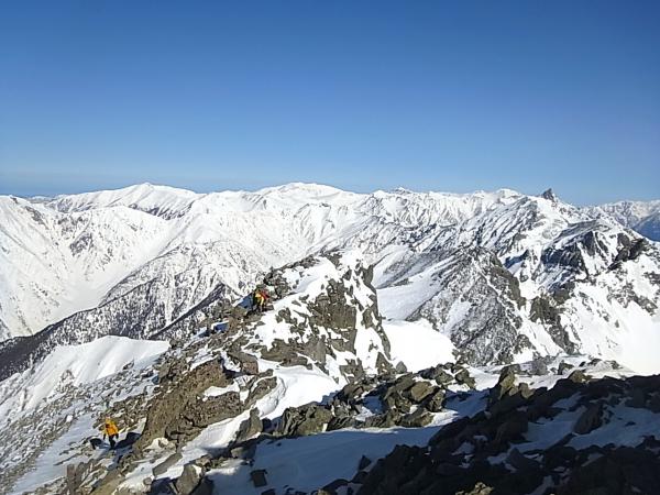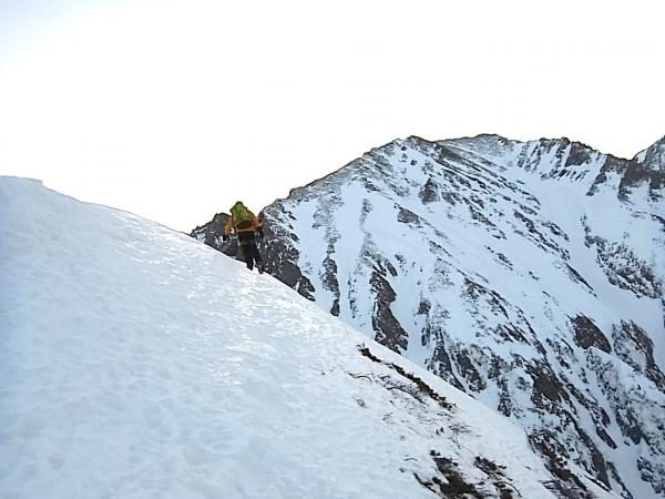 涸沢岳西尾根は冬期の奥穂高岳や北穂高岳、滝谷への最短ルートです。